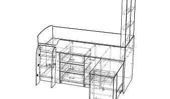 Кровать-чердак со столом и шкафом Дропс-2 BMS