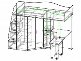 Кровать-чердак с рабочей зоной Мираж К7-4 BMS