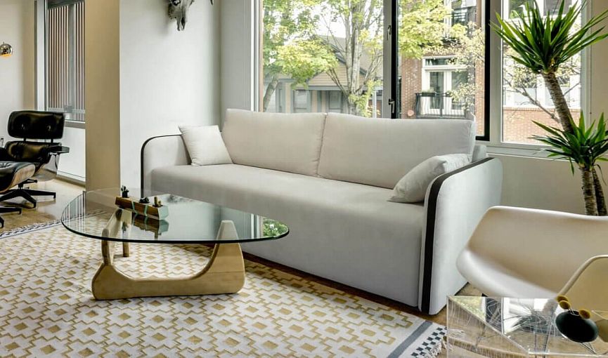 Спокойные ровные линии и лаконичный дизайн дивана Комфорт 41 сразу бросаются в глаза и покоряют сердца. Вглядитесь в эту милую конструкцию, не имеющую ни одного острого угла, где все детали обшиты мягкой обивкой, светлый оттенок которой подчеркивает темная линия отделки. Большие съемные подушки спинки не оставят равнодушным любителей уюта и комфорта. Маленькие подушки удобно подложить под голову во время дневного отдыха. В нежных объятиях дивана приятно расслабиться после напряженного трудового дня. Компактность – еще одно преимущество модели. Она почти незаметна в помещении, благодаря скромным габаритам, спокойным формам и светлой обивочной ткани. Данная модель имеет отличное соотношение цены и качества.