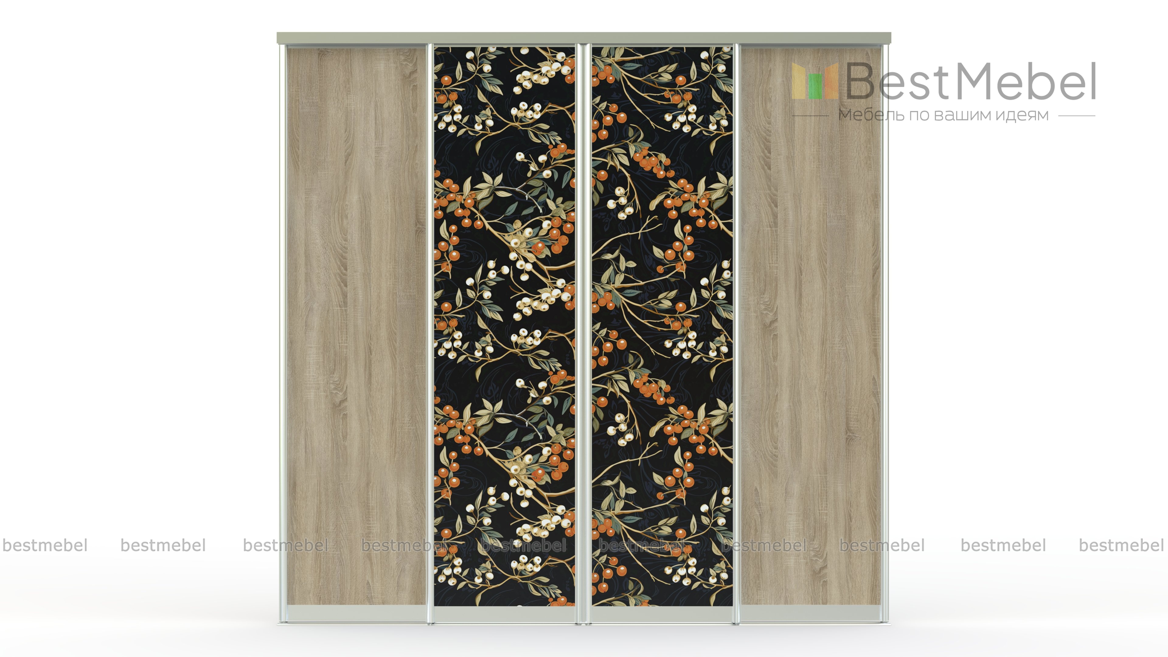 Двери-купе Берн 1 BMS превратят гардеробную в настоящее украшение интерьера. Готовый четырехдверный фасад объединил две створки из ЛДСП в светлых древесных тонах и две с оригинальной цветочной фотопечатью. Прочные благодаря рамам из профиля в оттенке серебро, раздвижные двери комфортны и надежны в эксплуатации, а также значительно экономят полезную площадь комнаты. Купить двери-купе Берн 1 BMS вы сможете в нашем интернет-магазине, подобрав цвет и рисунок по каталогу.