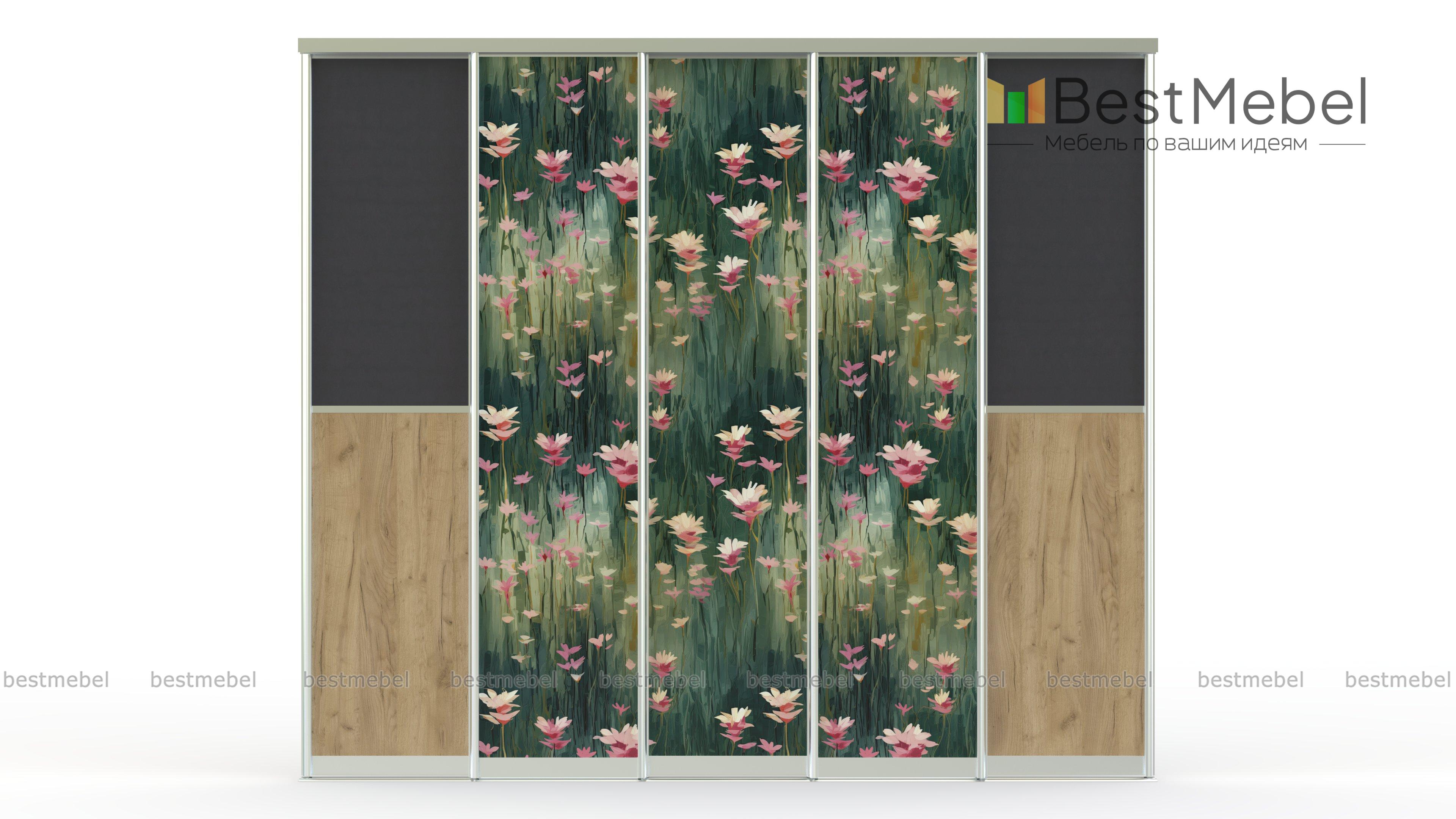 Двери-купе Интегро 2 BMS помогут вам оборудовать вместительную гардеробную и внести в интерьер яркий акцент. Пятидверный фасад объединил две створки из ЛДСП в контрастных древесных тонах и три со стильной цветочной фотопечатью. Двери с каркасом из алюминиевого профиля надолго сохранят функциональность, а залогом эстетичного внешнего вида станут устойчивые к выгоранию и простые в уходе поверхности. Купить двери-купе Интегро 2 BMS приглашаем выгодно в наш интернет-магазин.