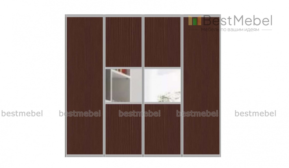Двери-купе Ванкувер 1 BMS станут универсальным решением для современных интерьеров. Готовый фасад для гардеробной выполнен из ЛДСП в темных древесных тонах с декоративными зеркальными вставками в центре. Благодаря износостойким и простым в уходе поверхностям створки надолго сохранят эстетичный вид, а прочность им обеспечат рамы из профиля в оттенке серебро. Купить двери-купе Ванкувер 1 BMS вы сможете в нашем интернет-магазине, подобрав подходящий цвет по каталогу.