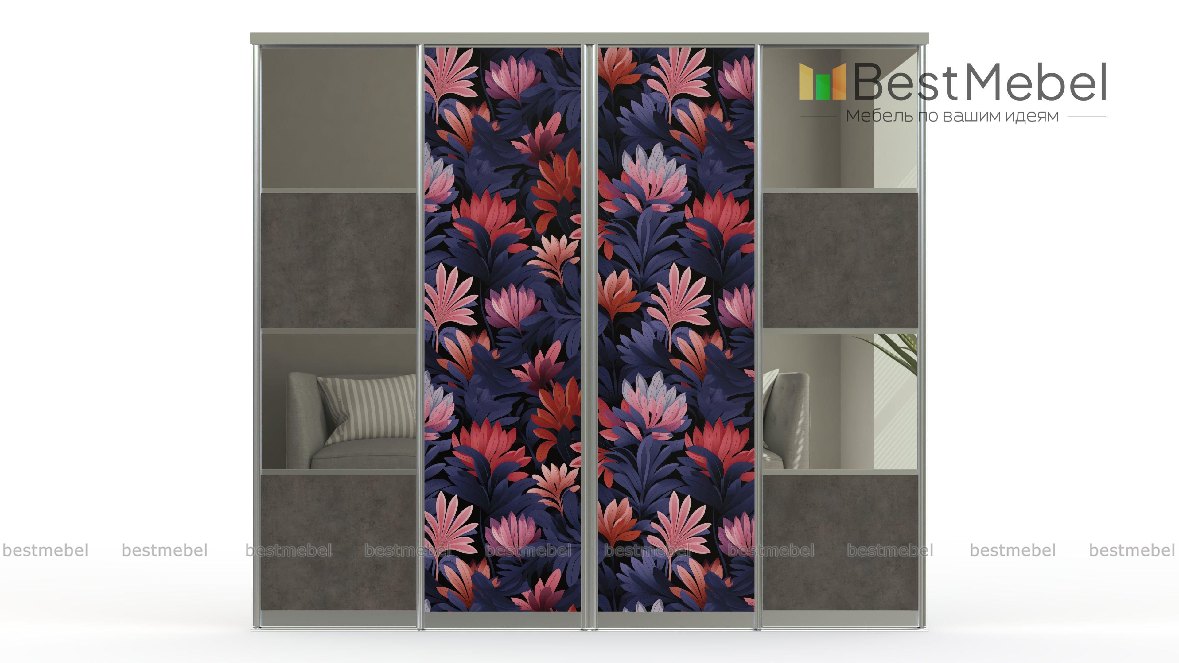 Двери-купе Ямал 1 BMS объединены в готовый фасад для гардеробной. В комплект входят две комбинированные створки из ЛДСП древесных тонов с зеркалами и две украшенные цветочной фотопечатью. Прочность конструкции придает алюминиевый профиль, а залогом эстетичного вида надолго станут износостойкие и простые в уходе поверхности. Купить двери-купе Ямал 1 BMS и внести в интерьер яркий акцент вам поможет наш интернет-магазин.
