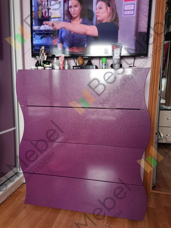 Приобретали комод в спальню, подошёл под все требования-красивый, удобный, не дорогой.Очень стильно и необычно смотрится в комнате.Белый глянец зрительно увеличивает немного пространство, довольны покупкой (Заказ №299690)