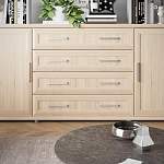 Комод 204.02 BMS – крупногабаритная модель, которая станет одним из центральных элементов интерьера гостиной или спальни. Просторная столешница позволит разместить ТВ, аудиосистему или предметы декора, а одежда, белье и аксессуары найдут себе место в четырех выдвижных вместительных ящиках и боковых распашных отделениях с полками. Рамочные фасады и насыщенные древесные оттенки станут настоящим украшением комнаты. Купить комод 204.02 BMS по доступной цене вы сможете в нашем интернет-магазине.