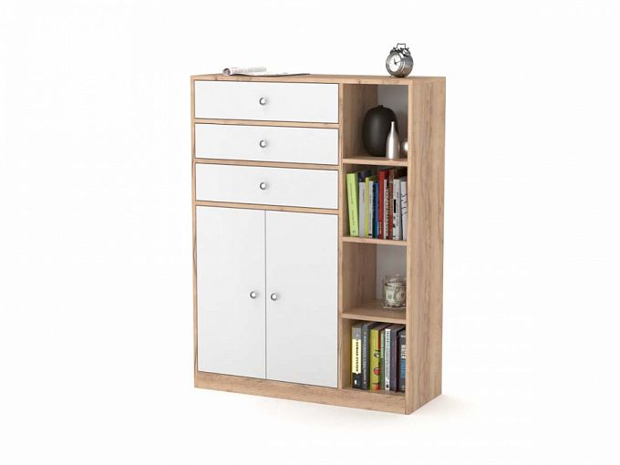 Комод Аллегро 18 BMS оборудован продуманной до мелочей системой хранения. Разместить необходимые в быстром доступе вещи и предметы декора помогут открытые секции, для мелочей предусмотрены три выдвижных ящика, а для более габаритных вещей – двухдверное распашное отделение с полкой. Сочетание корпуса древесных тонов и лаконичного белого фасада, оснащенного ручками-кнопками, универсально для большинства современных интерьеров. Купить комод Аллегро 18 BMS по доступной цене приглашаем к нам в интернет-магазин.