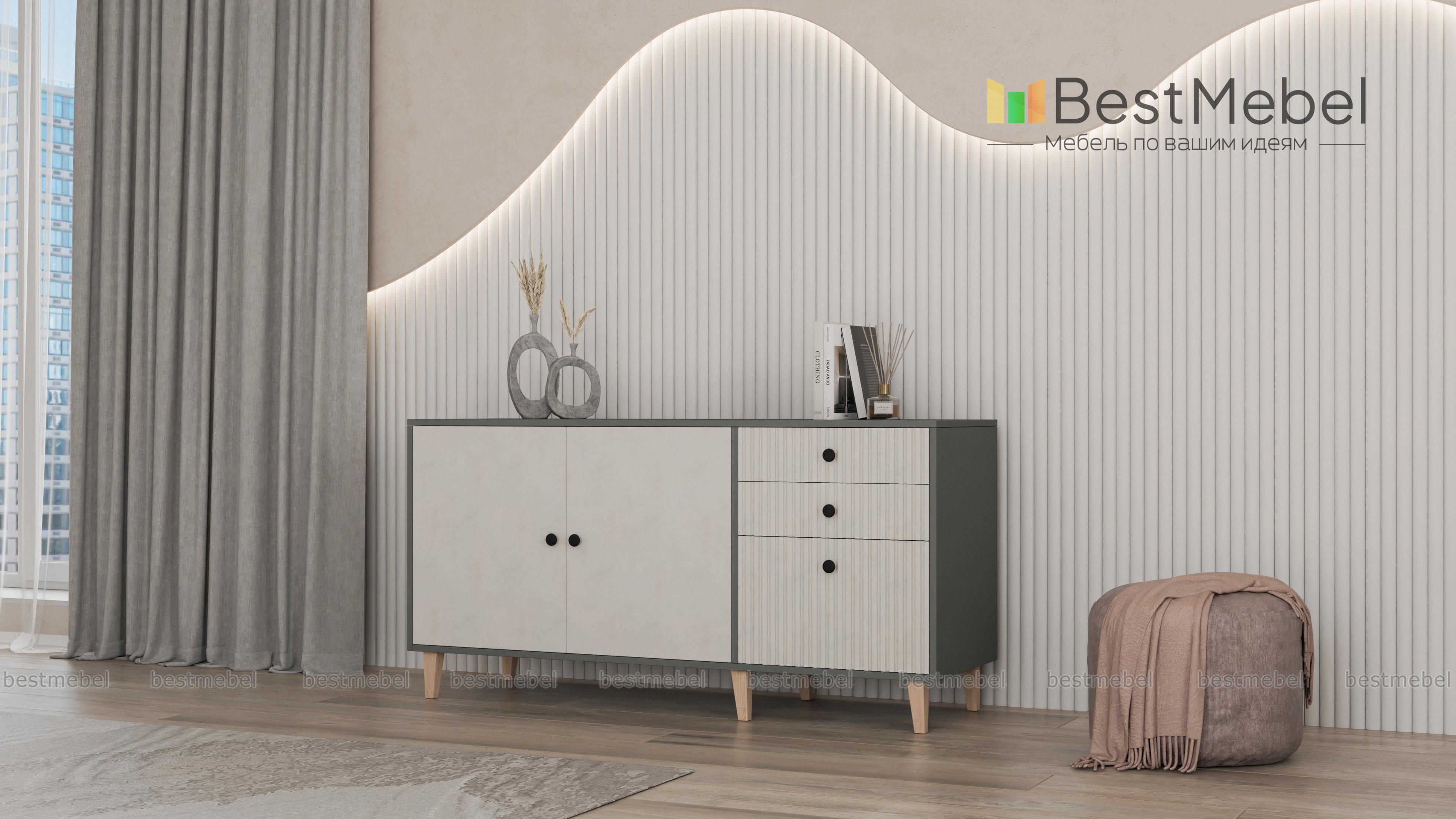 Комод Брукс 6 BMS гармонично дополнит дизайн комнаты в современном стиле. В отделке фасада скомбинированы гладкие и рифленые поверхности, высокие ножки визуально облегчают вместительную конструкцию. Продуманная система хранения комода состоит из двухдверного распашного отделения слева и плавно выдвигающихся ящиков справа. Купить комод Брукс 6 BMS вы сможете в нашем интернет-магазине, самостоятельно подобрав размеры и подходящую интерьеру цветовую гамму.