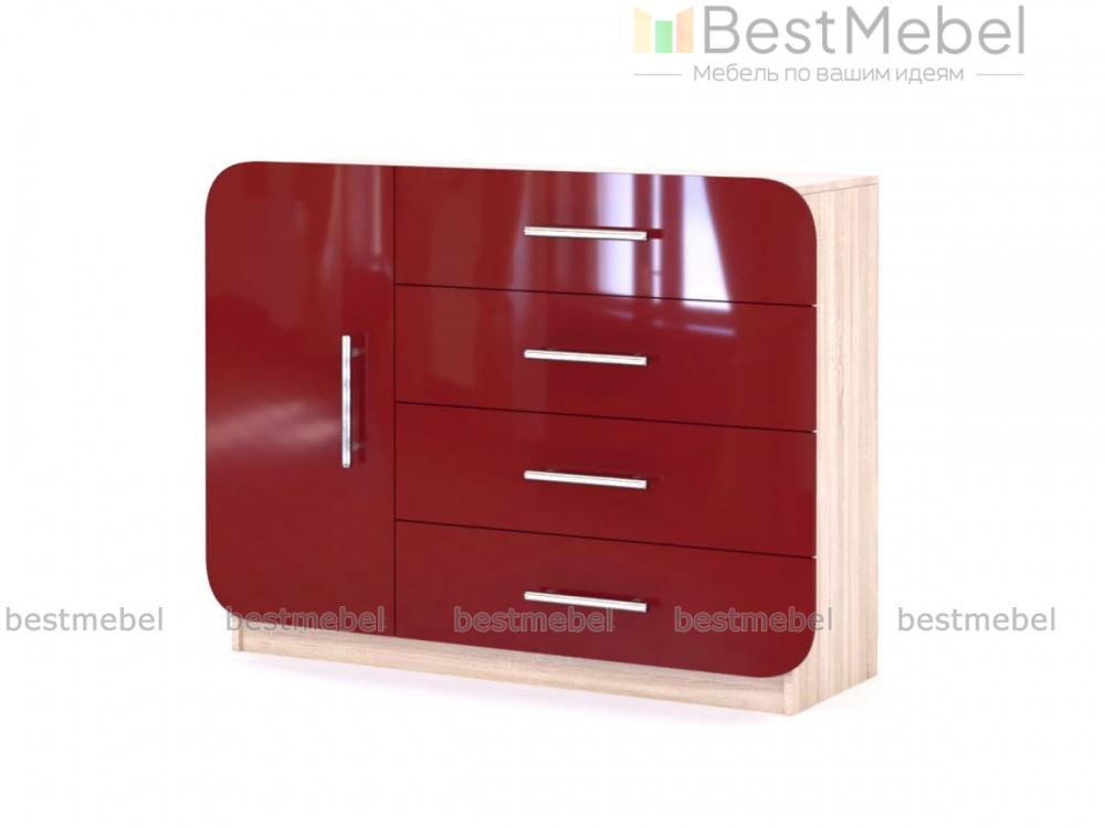 Комод Элиза 22 BMS дополнит современные интерьеры в стиле минимализм и хай-тек. Модель со скругленным по углам фасадом в ярком терракотовом цвете станет эффектным элементом дизайна и поможет вам разместить большое количество вещей. Удобная система хранения включает в себя распашное отделение с полкой и четыре широких выдвижных ящика, а для предметов декора или аппаратуры предусмотрена просторная столешница. Купить комод Элиза 22 BMS приглашаем в наш интернет-магазин по отличной цене.
