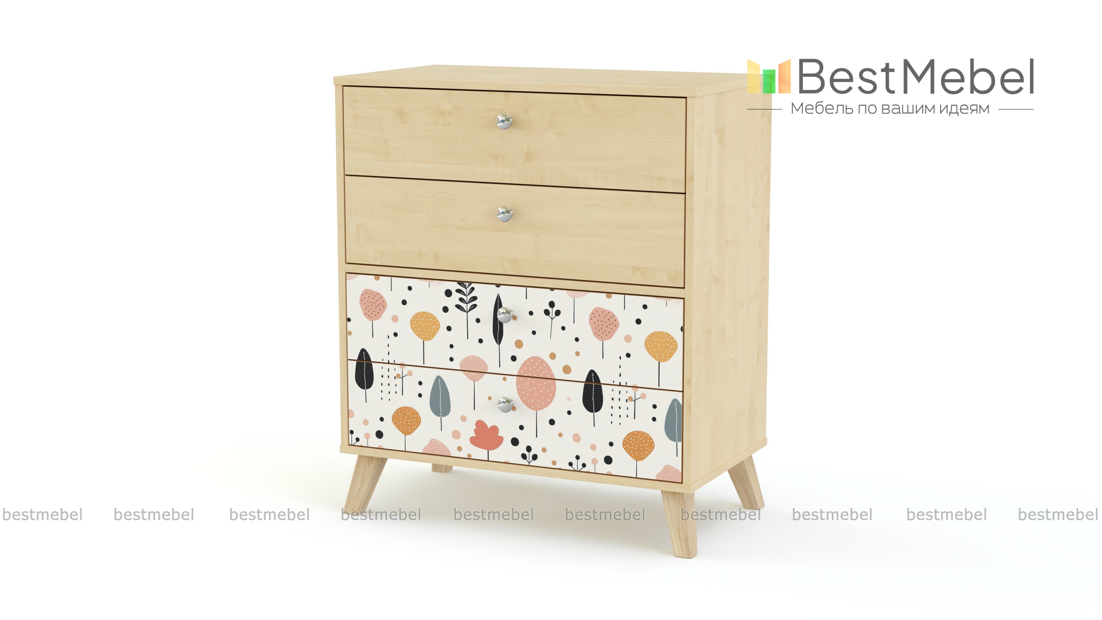 Комод Эльза 1 BMS подходит не только для хранения белья и одежды, но и игрушек, материалов для творчества и учебы. Модель на деревянных сканди-ножках имеет классическую конструкцию с четырьмя выдвижными ящиками и компактные размеры, оптимальные для детской. Нижние фасады комода выделены стильным пастельным рисунком, стойким и не выгорающим на солнце. Купить комод Эльза 1 BMS с выбором нужных размеров, цвета и фурнитуры вы сможете недорого в нашем интернет-магазине.