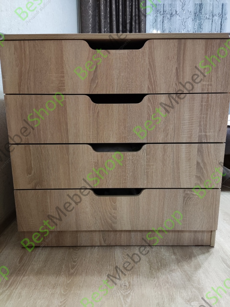 Заказывал комод К-800 BMS (заказ 00000159738) по своим размерам (800х800х430), цвет Дуб Сонома. Сделали все быстро. Вопросов к качеству нет. Кромки все ровные без сколов. Собирал сам, проблем не возникло.