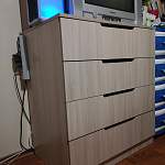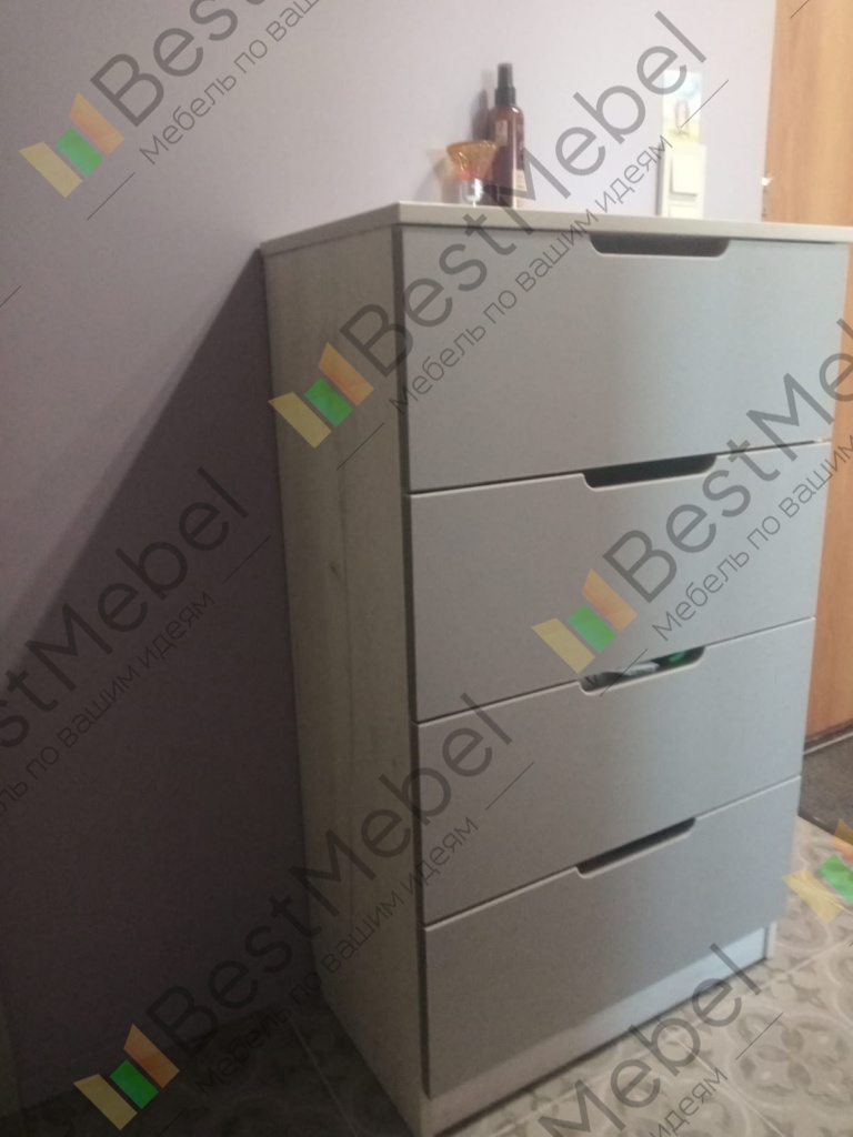 Отличный комод.попадание цвета 100%.Заказывали в проем в гардеробной.размер изготовили в точь-в-точь.хорошая фурнитура.Даже дно короба из такого же материала как комод.а не из двп.была приятно удивлена.Собрали без проблем.вообщем цена качество супер.ещё изготовили и доставили по размерам буквально за один день.рекомендую!