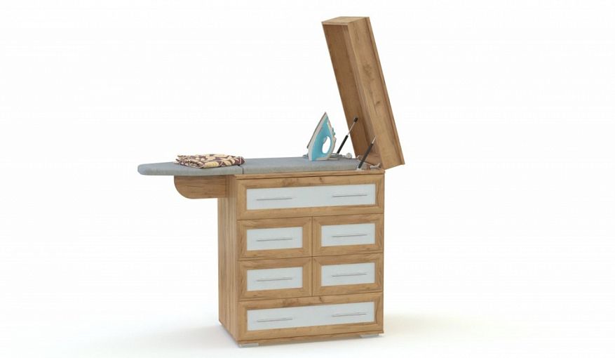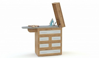 Комод Хурма-4 BMS вы сможете использовать для хранения домашнего текстиля и важных мелочей, а при необходимости без усилий превратить в гладильную доску. В сложенном виде трансформер имеет компактные размеры и оборудован шестью выдвижными ящиками – двумя большими и четырьмя малыми, складной боковой секцией и гладильной поверхностью, скрытой под откидной столешницей. В оформлении модели с классическими рамочными фасадами использованы теплые крафтовые оттенки и белый. Купить комод Хурма-4 BMS приглашаем к нам в интернет-магазин.
