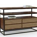 Комод Лавр 2 BMS, оборудованный двумя просторными открытыми полками и четырьмя выдвижными ящиками, оптимален для оформления зоны ТВ, хранения вещей и размещения предметов декора. Модель с корпусом в древесных тонах и фрезерованным 3D фасадом сочетает эстетику лофта и удобный функционал. Металлический каркас с высоким основанием придает конструкции визуальную легкость и прочность. Купить комод Лавр 2 BMS приглашаем в наш интернет-магазин с учетом необходимых размеров.