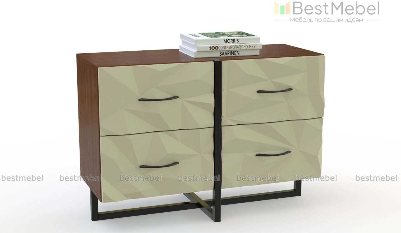 Комод Лайф 1 BMS станет не только практичным дополнением лофта, но и ярким элементом дизайна. Низкая модель на металлическом каркасе с перекрещенными опорными рамами декорирована по фасаду 3D фрезеровкой. Оборудованный четырьмя выдвижными ящиками, расположенными в два ряда, комод прекрасно подходит для хранения вещей и размещения интерьерных украшений. Купить комод Лайф 1 BMS вы сможете на сайте нашего интернет-магазина с выбором фурнитуры и цвета по каталогу.