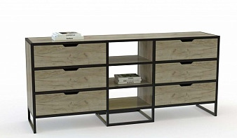 Комод Николь 12 BMS – широкий и вместительный, выполнен в стиле лофт и органично вписывается в интерьер современной квартиры. Удобная система хранения включает в себя шесть выдвижных ящиков, разделенных открытыми полками. Корпус из ламинированной плиты с имитацией массива дерева располагается на прочном металлокаркасе, ящики оснащены трапециевидными вырезными ручками. Купить комод Николь 12 BMS вы сможете в нашем интернет-магазине, подобрав цвет и размеры.