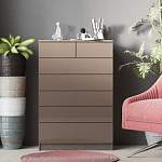 Комод Шелли 11 BMS отличается минималистичным дизайном и эффектно смотрится в сочетании древесных тонов и шоколадного глянца. Компактный и необыкновенно вместительный, комод станет прекрасным выбором для небольших спален, гостиных или прихожих. Систематизировать хранение мелочей и домашнего текстиля помогут семь выдвижных ящиков разных размеров, а дополнительной рабочей поверхностью станет широкая столешница. Купить комод Шелли 11 BMS по доступной цене приглашаем к нам в интернет-магазин.