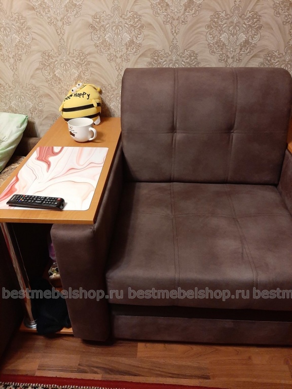 Очень уютное и недорогое кресло. Оценил задумку со встроенным столиком - теперь фильмы смотрю и какие то вкусняшки ем с большим удобством. И главное - я заказал его в цвет своей мебели, как будто так и задумано было.
