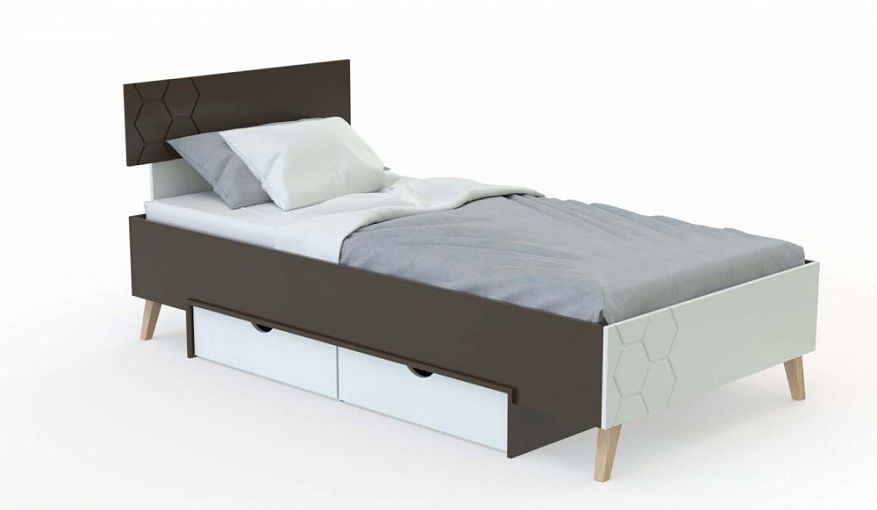 Кровать Баунти 17 BMS с фрезерованными гексагонами на спинках и оригинальной формой изголовья прекрасно подходит для современных молодежных интерьеров. Выполненная в контрастных цветах, модель сочетается практически с любым цветом стен и текстиля. Легкая и устойчивая благодаря высоким скошенным ножкам, кровать дополнена выкатными ящиками для хранения постельных принадлежностей и экономит пространство. Купить кровать Баунти 17 BMS приглашаем на сайт нашего интернет-магазина с выбором цвета и размеров.