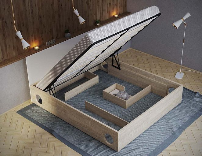 Кровать Лабиринт 1 BMS - внешне обычная и универсальная модель, в основании которой скрывается оригинальный лабиринт для домашнего питомца. Кровать выполнена в сочетании лаконичного белого и светлых древесных тонов и без труда впишется в большинство интерьеров. Вы так же можете подобрать любой другой цвет из широкой палитры, представленной у нас на сайте. Подъемный механизм в основании позволяет легко открыть кровать и найти вашего питомца. Купить недорого Кровать Лабиринт 1 BMS приглашаем в наш интернет-магазин.