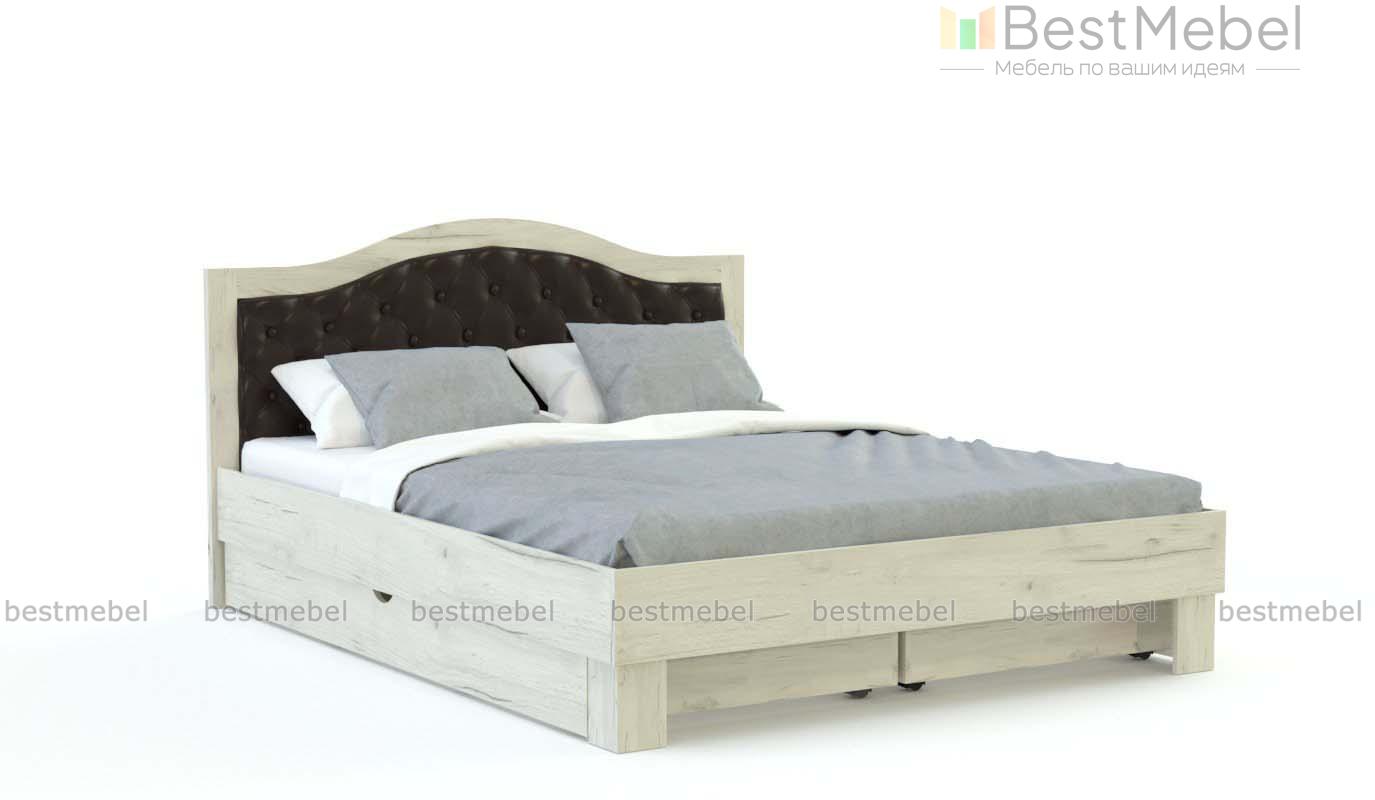 Кровать Техно 3 BMS выполнена в ЛДСП теплого крафтового оттенка, который подчеркивает нарочитую простоту конструкции. Модель с каркасом на широких угловых опорах оборудована двумя выкатными ящиками для удобного хранения постельных принадлежностей и прочих вещей. Просторное спальное место без спинки в изножье дополнено элегантным фигурным изголовьем с мягкой обивкой из экокожи в каретной стяжке. Купить кровать Техно 3 BMS вы сможете в нашем интернет-магазине, подобрав цвет и размеры.