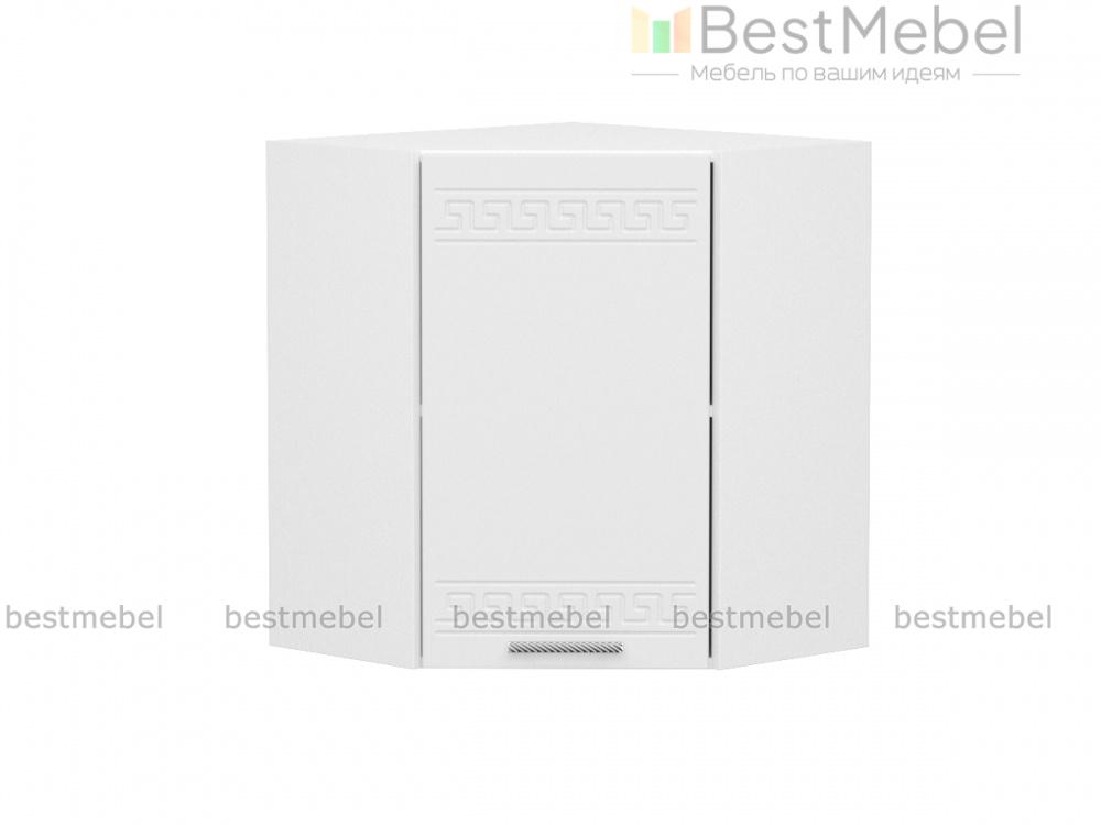 Шкаф навесной угловой 590 Греция BMS незаменим в комплекте Г-образной формы и служит для соединения модулей верхнего ряда. Компактный внешне, шкаф выгодно использует угловое пространство. За глухой распашной дверцей – просторное отделение с полкой для хранения кухонных принадлежностей. Фасад, выполненный в белом матовом оттенке, украшен орнаментом и отличается устойчивостью к влаге, механическим повреждениям и простотой ухода. Купить шкаф навесной угловой 590 Греция BMS по демократичной цене вы сможете в нашем интернет-магазине.