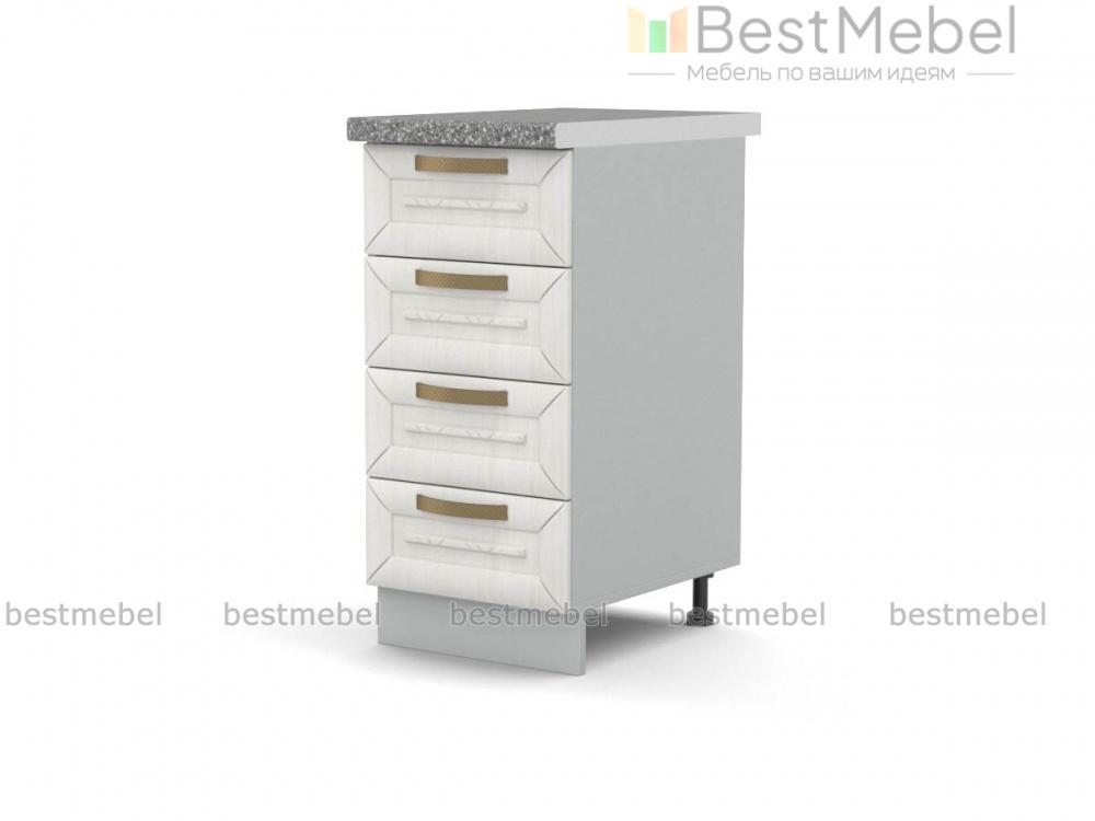 Шкаф нижний 4 ящика Агава BMS дополнит напольный ряд модульного комплекта для кухни и незаменим для хранения мелочей. Компактный шкаф с четырьмя выдвижными ящиками позволит разместить столовые приборы и прочие аксессуары в одном месте и не тратить время на поиски нужной вещи. Фрезерованные фасады в общем для всей серии классическом стиле выполняются в светлых оттенках на выбор. Купить шкаф нижний 4 ящика Агава BMS вы сможете по доступной цене в нашем интернет-магазине.