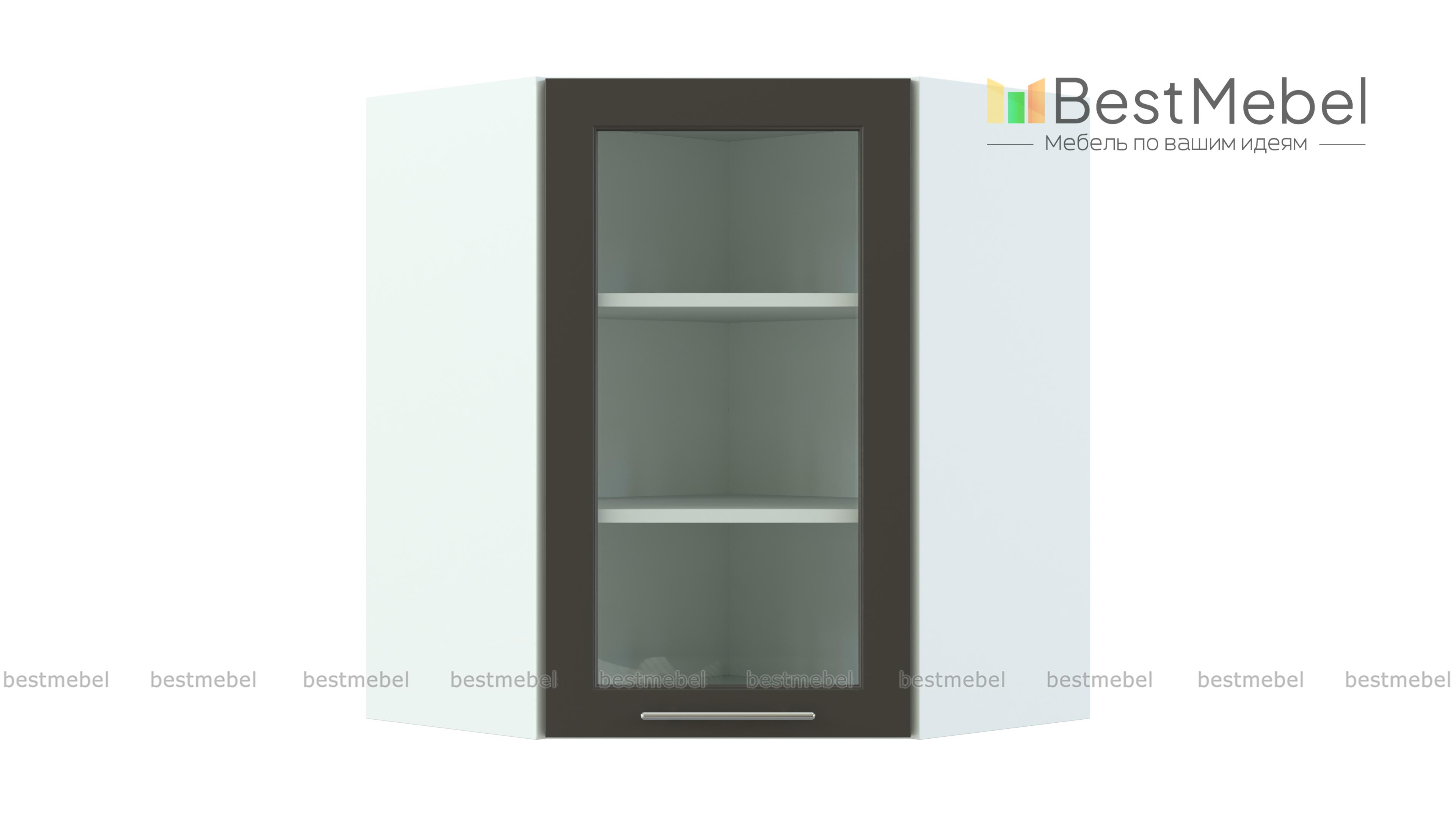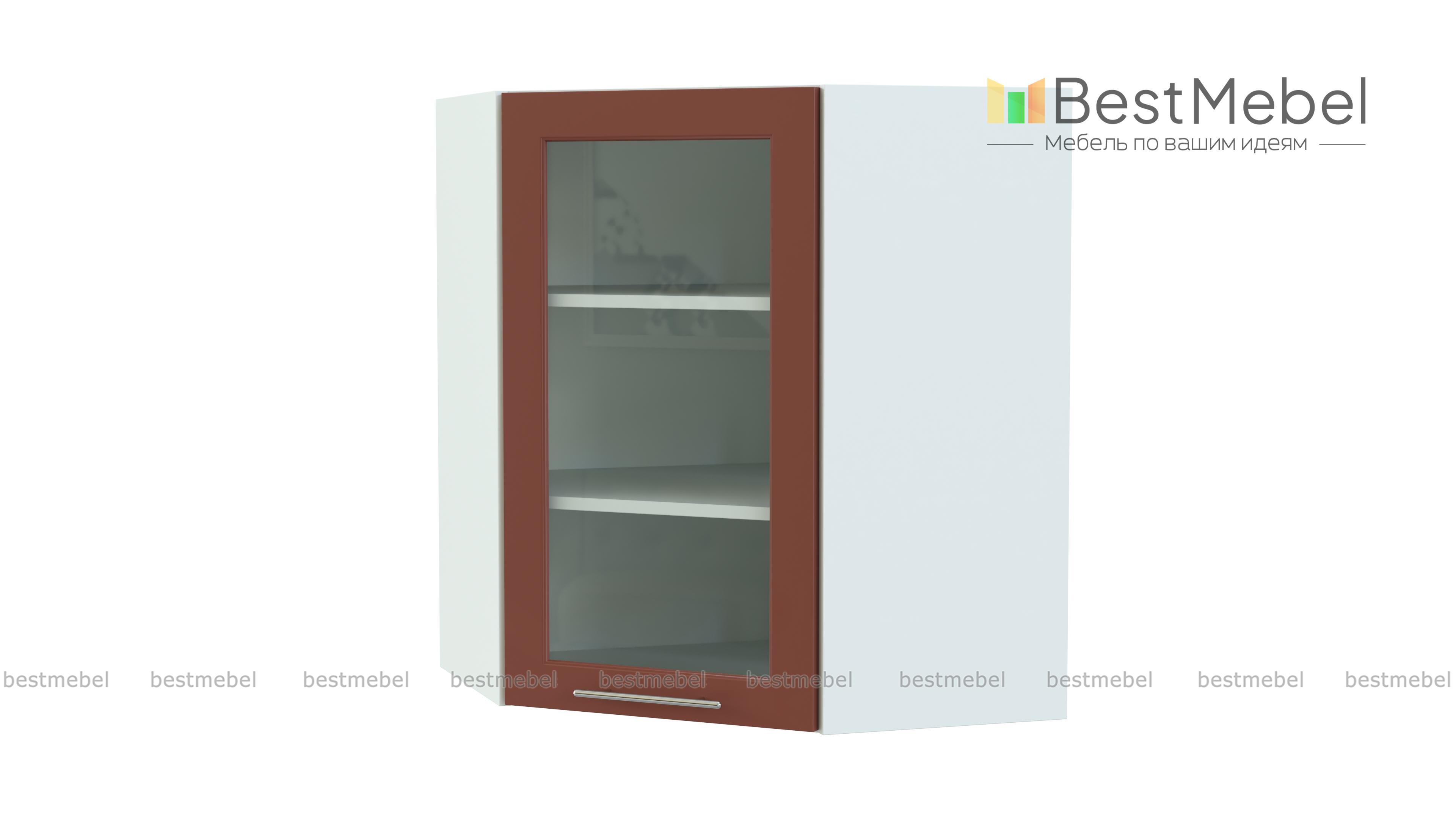 Шкаф верхний витрина угловая Ирен BMS выполнен в форме трапеции и отличается особенной вместительностью. Распашное застекленное отделение с полками удобно для хранения посуды, кофе, чая или специй. Благодаря угловой конструкции шкаф может выполнять роль стыковочного элемента, объединяя модули левого и правого крыла в кухонном гарнитуре. Теплые терракотовые тона и рамочный фасад гармонично впишутся в меблировку классического стиля. Купить шкаф верхний витрину угловую Ирен BMS приглашаем в наш интернет-магазин.