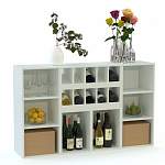 Стеллаж Вальс 50 BMS поможет оборудовать мини-бар в интерьере кухни, гостиной или кабинета. Открытая модель, выполненная в теплых крафтовых тонах из ЛДСП высокого качества, предназначена для размещения винной коллекции, бокалов, сопутствующих аксессуаров и предметов декора. В центре стеллажа располагаются наклонные и высокие прямые полки для бутылок, а по бокам стандартные секции для прочих вещей. Купить стеллаж Вальс 50 BMS приглашаем в наш интернет-магазин с выбором цвета и размеров.