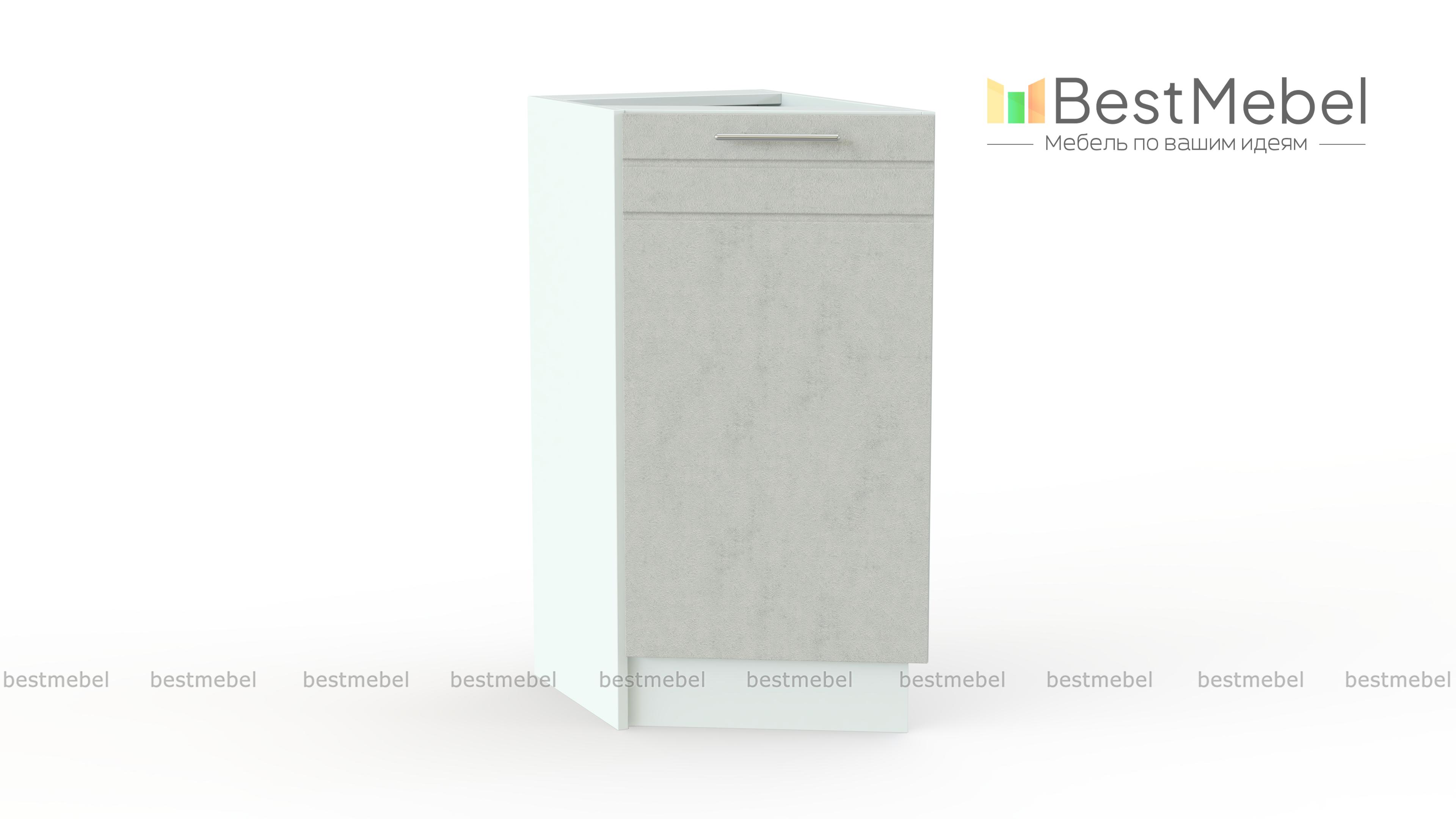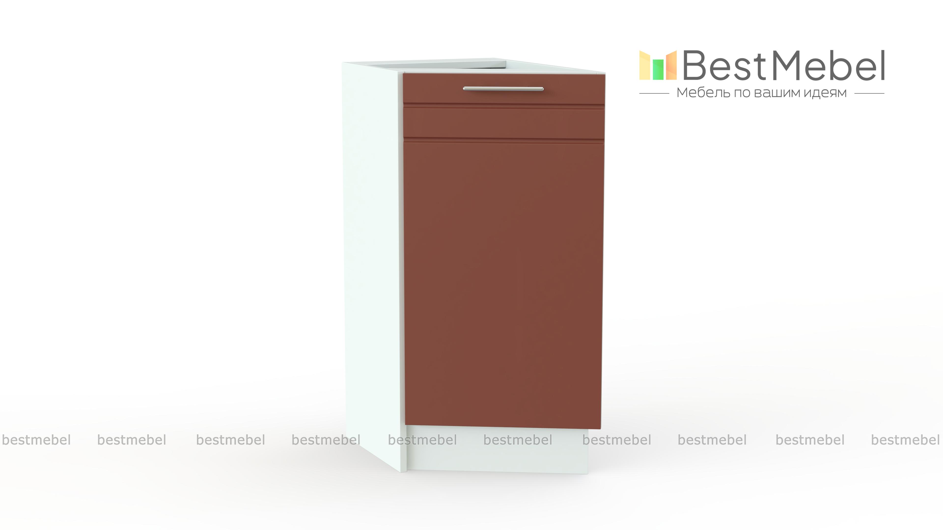 Стол Олимпия торцевой BMS предназначен для завершения нижнего ряда модулей кухонного гарнитура. Компактный шкафчик со скошенным фасадом придаст композиции гармоничный вид, визуальную легкость и законченность. Общий для всей серии строгий дизайн и темные матовые тона легко впишутся в современные интерьеры. За распашной дверцей – отделение с полкой для приправ и разнообразных бытовых мелочей. Купить стол Олимпия торцевой BMS по доступной цене вы сможете в нашем интернет-магазине.