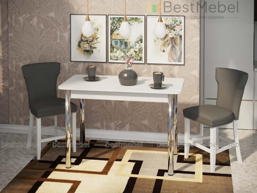 Гармоничное сочетание классической формы и современной функциональности – кухонный стол Румба ПР-1 BMS. Белая столешница дополнена хромированными металлическими ножками. Компактный стол может превратиться в просторный при помощи механизма трансформации и вставки в центральной части. Универсальная внешность стола легко впишется в различный по оформлению интерьер. Купить кухонный стол Румба ПР-1 BMS по привлекательной цене можно на сайте нашего интернет-магазина.