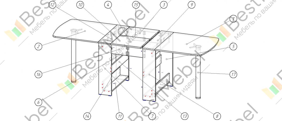 + В разных конфигурациях - разный размер. Удобно менять по ситуации.+ В полностью разложенном виде комфортно умещаются 10 человек.+ При заказе указал глубину 900. Сделали, все детали прекрасно вписались.- Самая большая проблема - вставки столешницы. Их предлагают соединить хлипкими скрытыми петельками. Снизу их ничего не поддерживает. Эти петли у меня сломались. Лучше заменить их на шканты.- Заказал кромку 2мм на лицевых панелях. В магазине перестарались и сделали её даже на стыках деталей столешницы. На этих стыках надо оставлять минимальную кромку.- Разметка для мебельных винтов - верная. А вот разметки для карточных петель и фиксаторов - все были неправильные. Вплоть до того, что фиксатор вставок столешницы предлагали закрепить на пути открытия царги. Пришлось самому размечать и пересверливать места крепления петель.