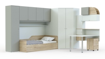 Детская комната Рафаэль 8 BMS объединила в стильной композиции комфортную зону отдыха, рабочее место и продуманную систему хранения. В комплекте вместительный платяной шкаф-трапеция, секция с антресолями, бельевым пеналом и расположенной в нише кроватью с выкатным спальным местом в основании, а также письменный столик, дополненный мобильной тумбой, шкафчиками для учебных материалов и навесной книжной полкой. Купить детскую комнату Рафаэль 8 BMS, в оформлении которой скомбинированы нейтральные и яркие оттенки, приглашаем в наш интернет-магазин.