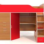 Великолепная детская кровать-чердак Дм76 BMS сэкономит площадь в комнате ребенка и ваш бюджет! Не нужно покупать дополнительную мебель – модель организует спальное место, рабочую зону и множество вариантов хранения вещей. Всё в одной композиции! Постель оборудована защитными бортами, находится на верхнем ярусе, забраться куда рекомендуем по лестнице. Нижняя ступенька – полноценный ящик. Под основанием удачно вписаны стол, полки. Распашной шкаф и конструкция из выдвижных отделений предназначена для одежды, текстиля. Двухцветная комбинация оттенков ЛДСП выглядит свежо и привлекательно.