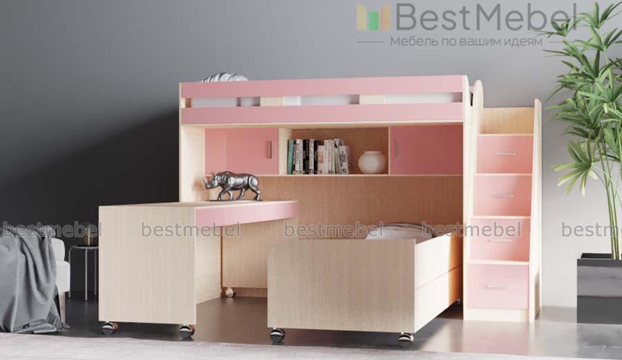 Детская кровать Минима КД-136 BMS представляет собой практичную модель-трансформер, особенно актуальную в небольших помещениях. На втором ярусе располагается спальное место с бортиками, добраться до которого поможет торцевая лестница с удобными ступенями, а в нише на первом скрыты книжные полки, выкатная кровать и письменный стол с колесными опорами. В сложенном виде композиция занимает минимум места и экономит полезную площадь для игр. Купить детскую кровать Минима КД-136 BMS приглашаем в наш интернет-магазин.