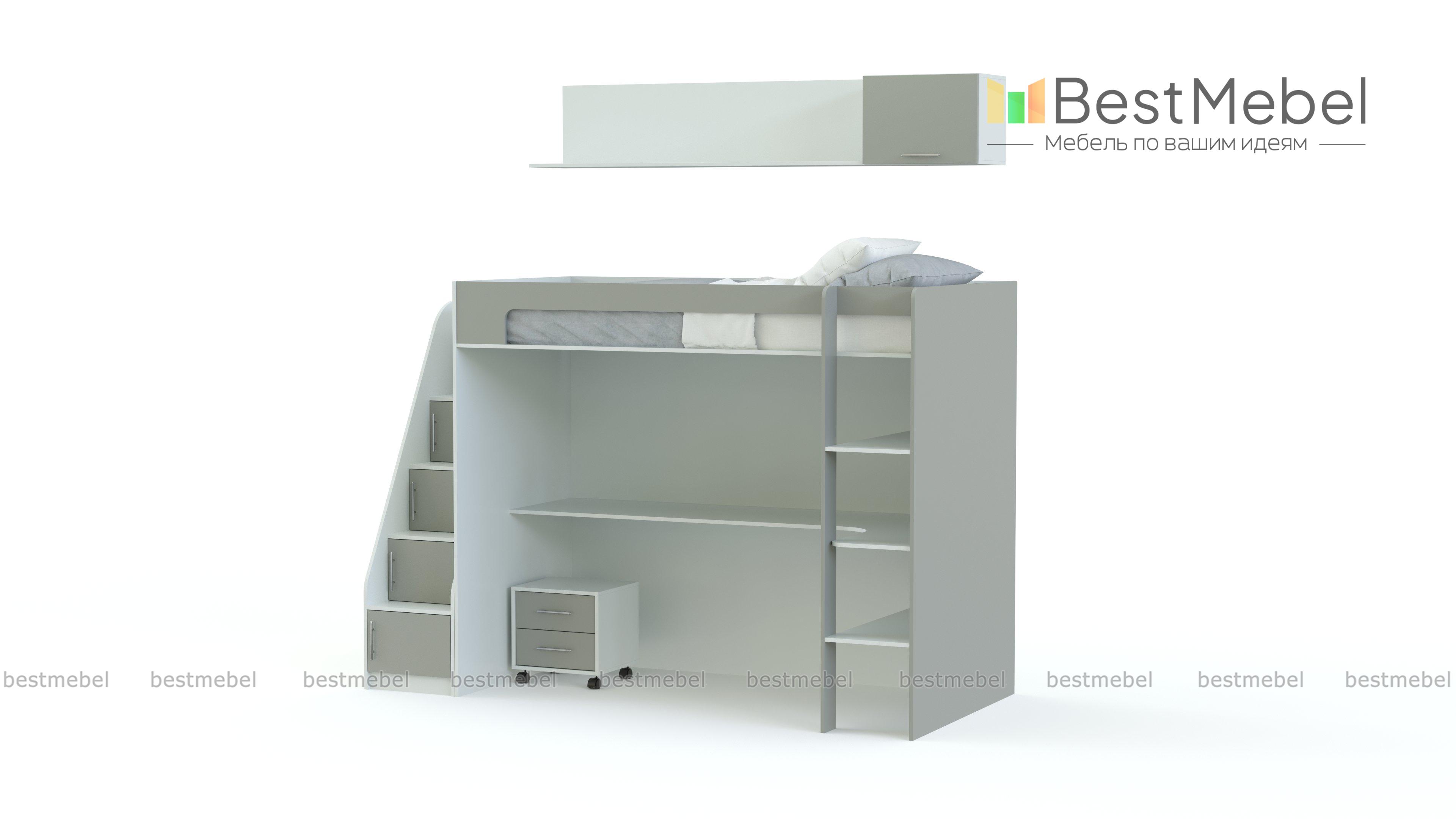 Кровать-чердак Лилия 1 BMS идеально подходит для меблировки современной детской, позволяя создать актуальный, визуально легкий и функциональный интерьер. Модель оборудована спальным местом с защитным бортиком, устойчивой лестницей, просторной столешницей в нише и дополнена навесной книжной полкой и мобильной тумбой с выдвижными ящиками для канцелярских мелочей. В оформлении эффектно сочетаются контрастные цвета – белый и с текстурой дерева. Купить кровать-чердак Лилия 1 BMS приглашаем выгодно в наш интернет-магазин.