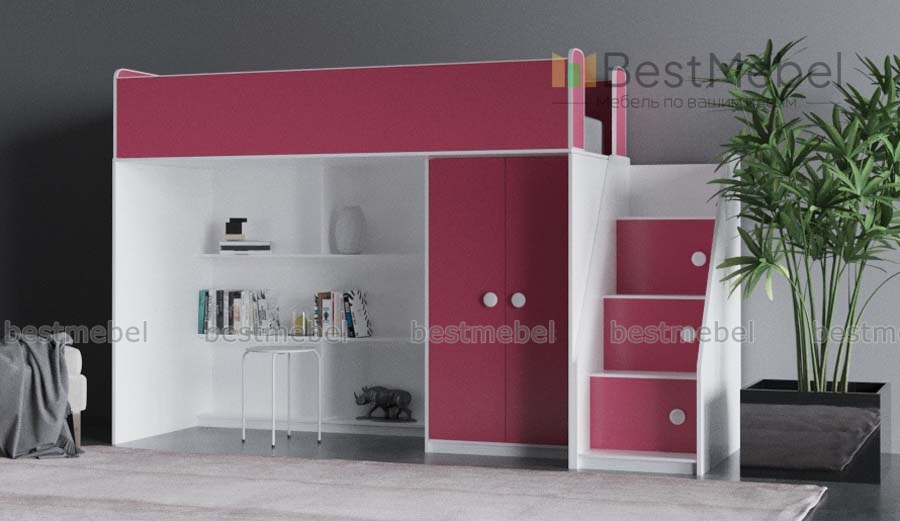 Кровать-чердак Миф 43.1 BMS поможет вам обустроить уютную детскую даже в малогабаритной квартире. Многофункциональная композиция включает в себя комфортное спальное место с защитными бортиками, игровую зону с полками для книг и игрушек, распашной шкаф для одежды и приставную лестницу-комод, устойчивую и удобную для хранения вещей ребенка. Разнообразие цветовых решений позволит легко подобрать оптимальный вариант. Купить кровать-чердак Миф 43.1 BMS приглашаем недорого в наш интернет-магазин.