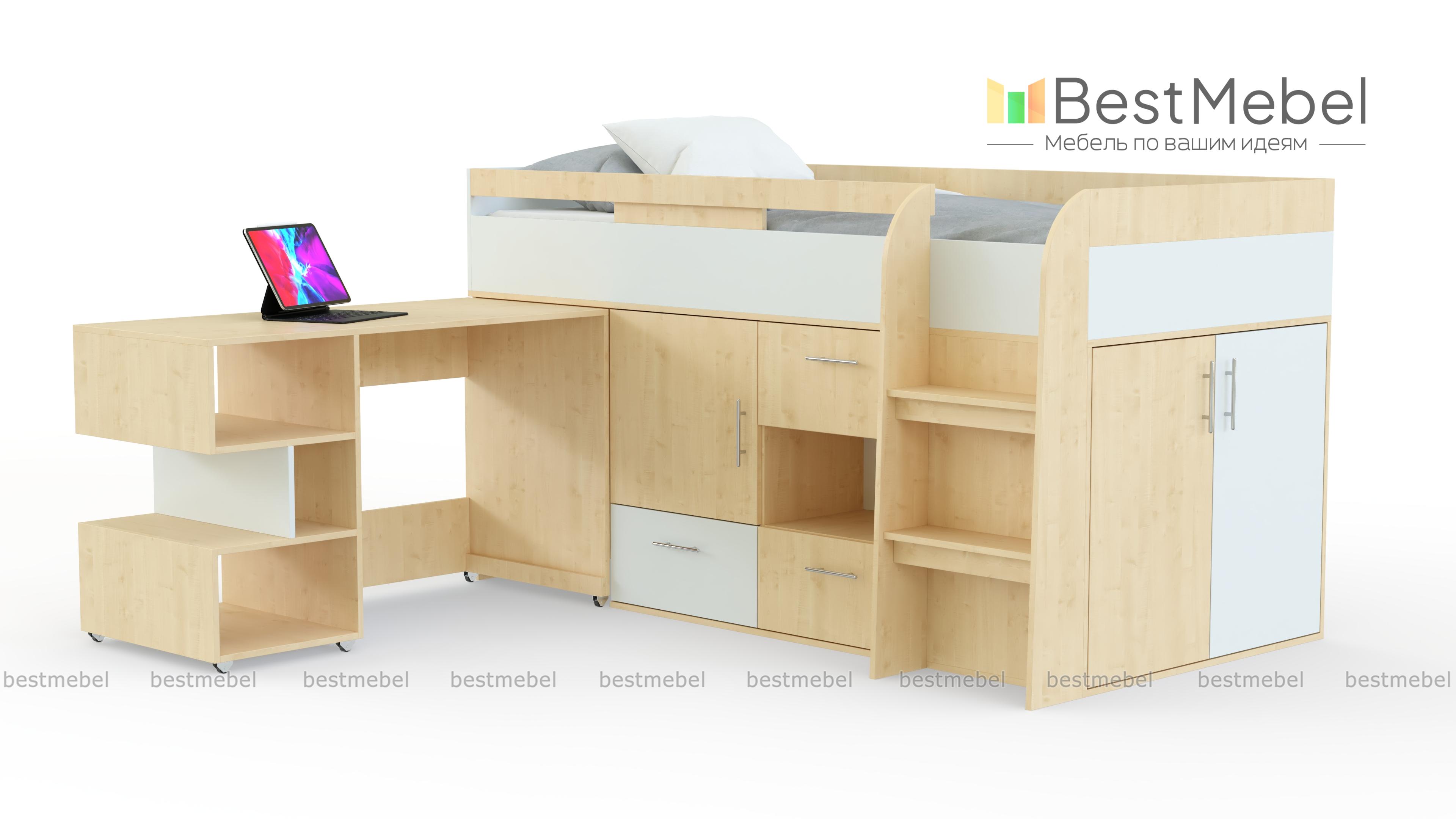 Кровать с 3 ящиками Олеся-21 BMS поможет с максимальной эффективностью использовать доступное пространство небольшой детской. Многофункциональная композиция объединила комфортную зону отдыха, удобную систему хранения, включающую распашные отделения, выдвижные ящики и открытые полки, и выкатное рабочее место. Легко забраться в постель поможет лестница с широкими ступеньками. Купить кровать с 3 ящиками Олеся-21 BMS приглашаем в наш интернет-магазин, подобрав наиболее подходящее цветовое решение.