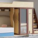 Кровать с диваном Василиса 16 BMS гармонично впишется в интерьер подростковой комнаты и сэкономит пространство. Двухъярусная модель оборудована просторным спальным местом на верхнем ярусе и расположенными под ним вместительными шкафами для одежды, книжной полкой и раскладным диваном. Дополняет композицию лестница-комод с вместительными ящиками под ступеньками. Купить кровать с диваном Василиса 16 BMS с рамочными фасадами в контрастных древесных тонах приглашаем к нам в интернет-магазин.