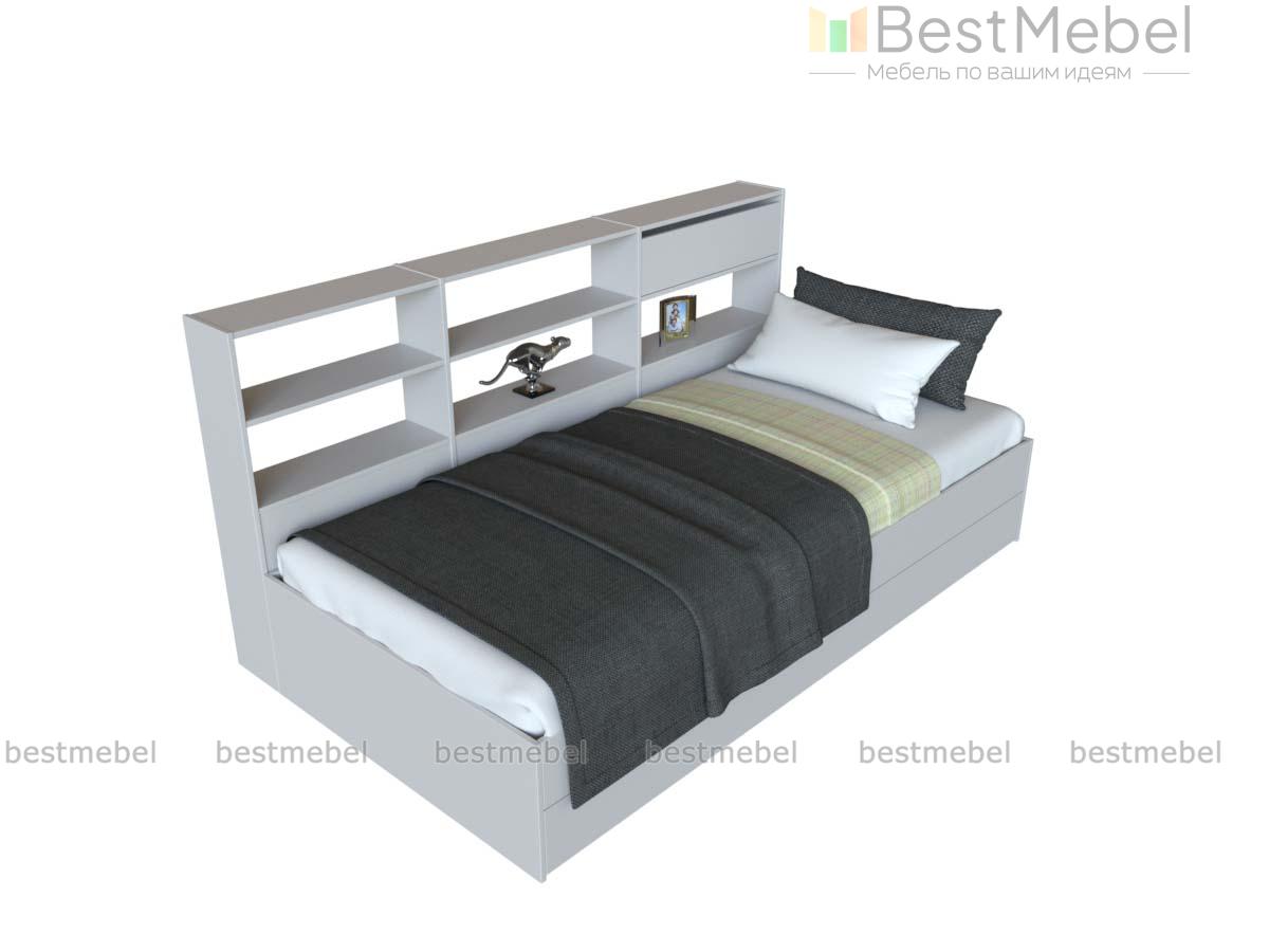 Кровать детская Мия 11 BMS представляет собой комбинированную конструкцию, особенно актуальную в небольших городских квартирах. Модель выполнена в универсальном белом цвете и оборудована просторным спальным местом без спинок в изголовье и изножье, книжным стеллажом и выдвижным ящиком в основании. Лаконичный дизайн, простота и высокая эргономичность кровати делают ее прекрасным выбором для современных молодежных комнат. Купить кровать детскую Мия 11 BMS по доступной цене вы сможете в нашем интернет-магазине.