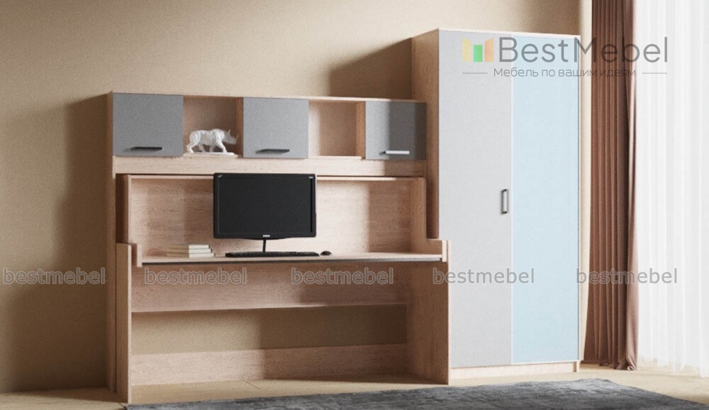 Набор Доминика 7 BMS – практичная модель, которая станет выгодным приобретением для малогабаритных помещений. В единую композицию объединены письменный стол, и распашной шкаф с полками и штангой. Фасады выполнены в сочетании древесных оттенков с однотонными графитовыми вставками и декорированы хромированными ручками, одна из дверей шкафа оснащена зеркалом. Купить набор Доминика 7 BMS для современной молодежной комнаты вы сможете недорого в нашем интернет-магазине.