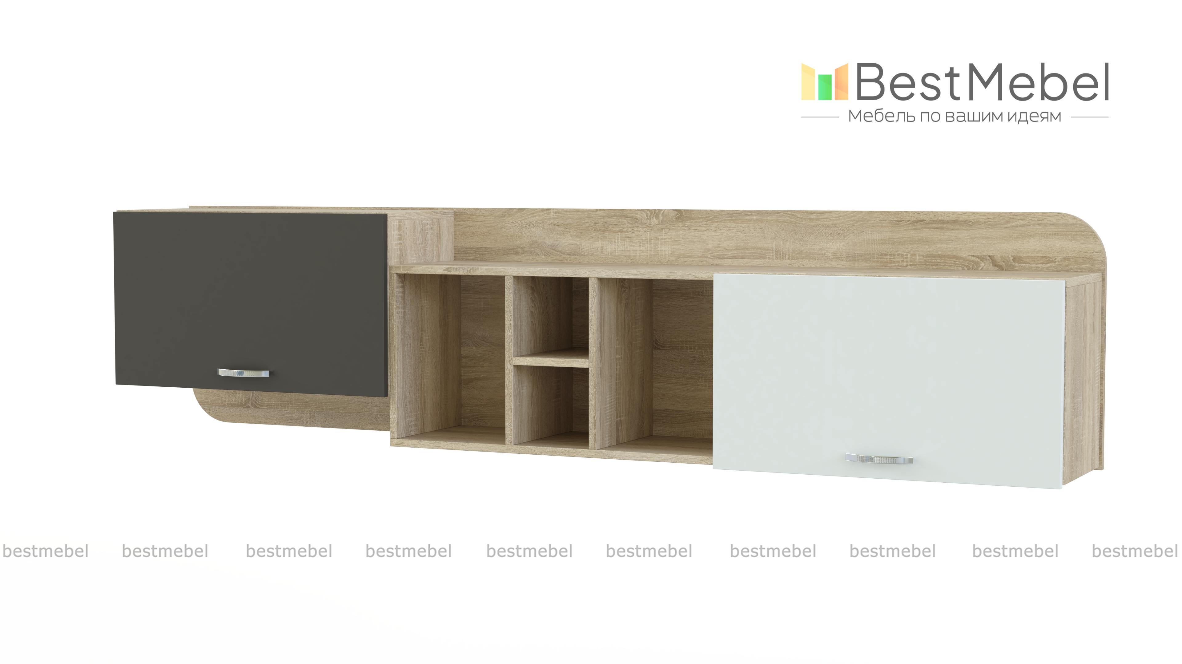 Полка Гламур 05 BMS станет изящным дополнением комнаты, гармонично сочетая вместительность и визуальную легкость. Навесная модель сэкономит полезную площадь и компактно разместит книги, игрушки, уходовые средства и декоративные мелочи. Для максимально удобного хранения полка оборудована двумя глухими откидными отделениями и открытыми секциями разной высоты. Фасад выполнен в нежно-сером и графитовом оттенке, дверцы оснащены ручками-скобами. Купить полку Гламур 05 BMS по лучшей цене приглашаем в наш интернет-магазин.