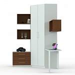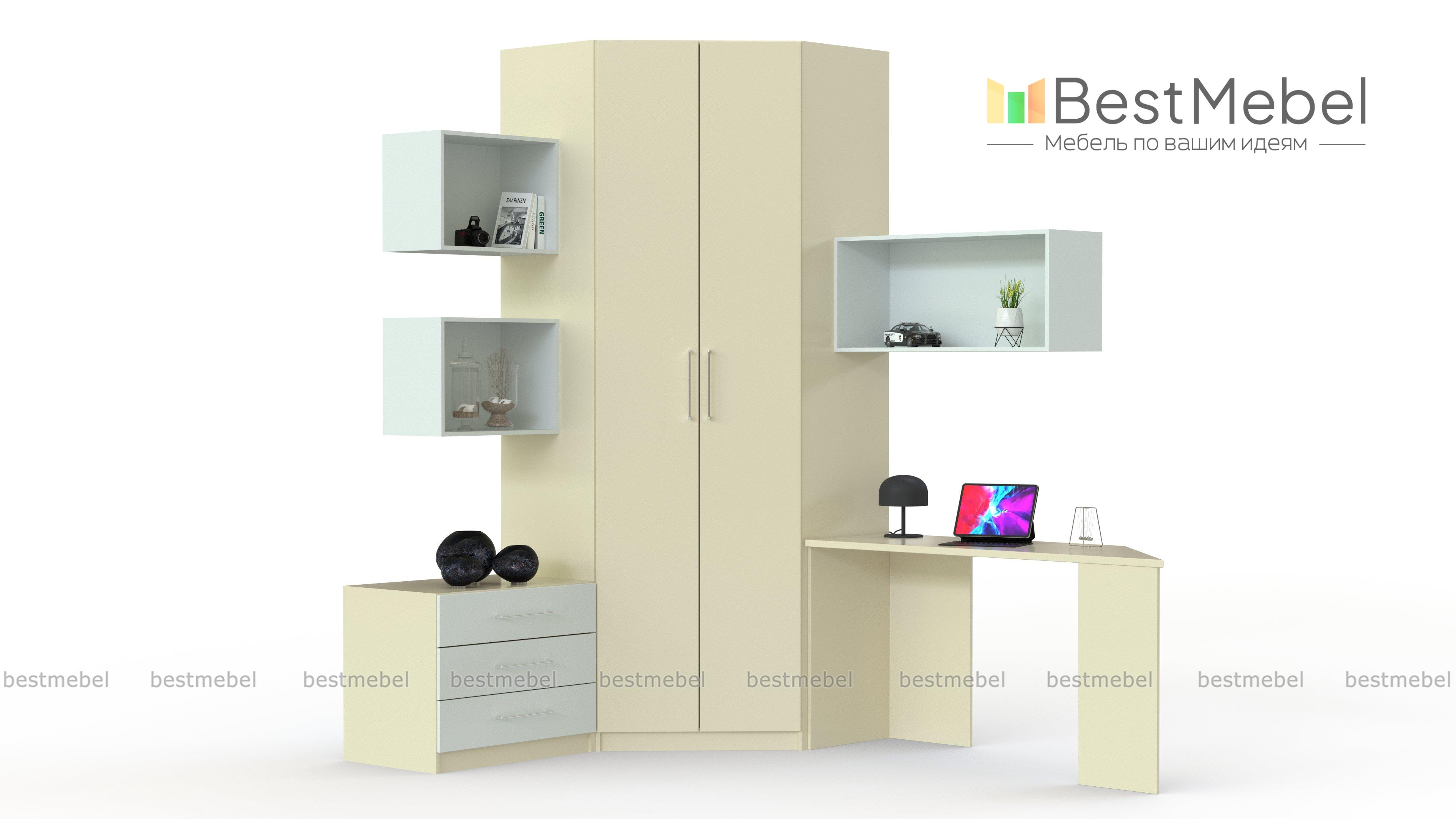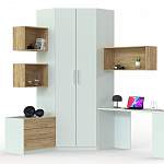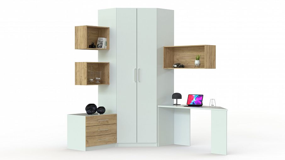 Шкаф угловой со столом Графика BMS – это стильная геометричная композиция для ультрамодного интерьера. Благодаря продуманной комбинации модулей вы сможете разместить гардероб, разнообразные бытовые мелочи, принадлежности для работы или учебы и обустроить комфортную рабочую зону. В комплекте угловой распашной шкаф, навесные полки, тумба и компьютерный столик с трапециевидной столешницей. Графичность композиции подчеркивает сочетание белого и теплых древесных тонов. Купить шкаф угловой со столом Графика BMS приглашаем в наш интернет-магазин.