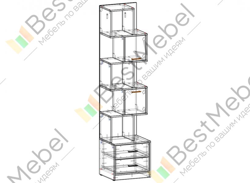 Стеллаж Селфи 2 BMS отличается компактными размерами и вместительностью за счет высоты. Оригинальная конструкция представляет собой расположенные в шахматном порядке открытые и глухие распашные отделения, дополненные двумя выдвижными ящиками в основании. Стеллаж выполнен в нейтральных тонах, которые подойдут комнате и мальчика, и девочки, и легко разместит книги, игрушки, школьные принадлежности и еще многое другое. Купить стеллаж Селфи 2 BMS, надежный и практичный, приглашаем по доступной цене в наш интернет-магазин.