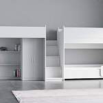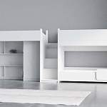 Трехъярусная кровать Миф 43.1.5 BMS объединила комфортную зону отдыха с игровой и удобной системой хранения. Продуманная композиция включает в себя двухъярусную кровать и кровать-чердак, на первом ярусе которой располагаются распашной шкаф для одежды и книжные полки, и лестницу-стеллаж с ящиками под ступеньками. Улучшат освещенность световые окна, а безопасность детям обеспечат защитные бортики и скругленные углы. Купить трехъярусную кровать Миф 43.1.5 BMS вы сможете в нашем интернет-магазине, подобрав цветовое решение.