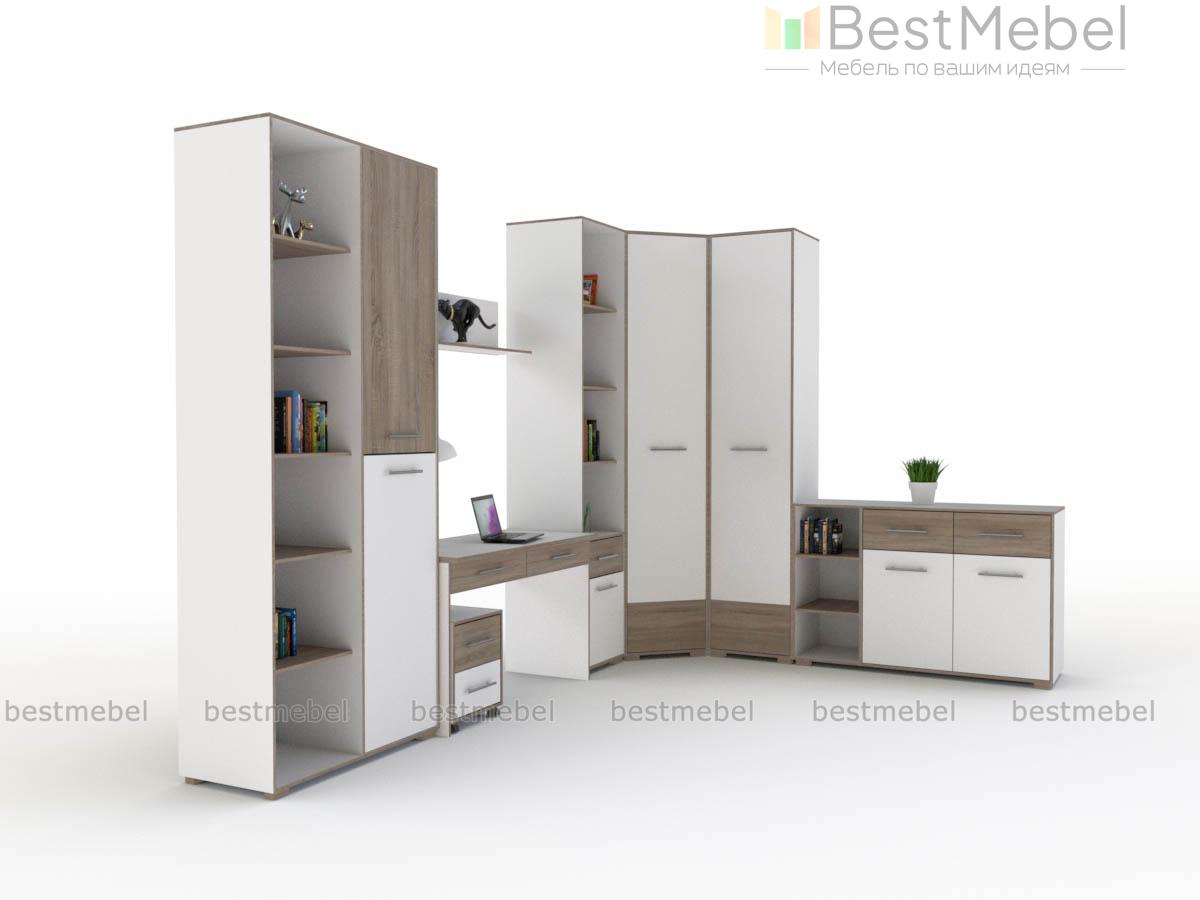 Угловая стенка со столом Нью-2 BMS выполнена в актуальном сочетании белого и древесных тонов, олицетворяя современный подход к организации пространства. Модульный комплект включает в себя все необходимое школьнику для успешной учебы и бережного хранения вещей. Стенка оборудована письменным столом с навесной полкой и выкатной тумбой, комбинированным книжным шкафом и пеналом, а также распашными шкафами и вместительным комодом. Купить угловую стенку со столом Нью-2 BMS по отличной цене вы сможете в нашем интернет-магазине.