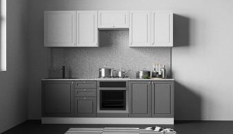 Прямые серо-белые кухни в Москве
