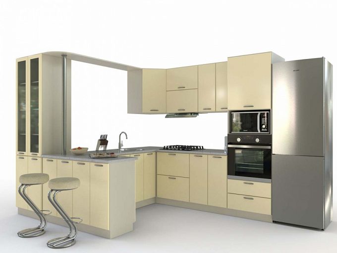 Кухня Элмо-1 BMS – практичный выбор для современной студии, в котором объединились элегантный дизайн и высокая функциональность. П-образный гарнитур с белыми глянцевыми фасадами делает помещение визуально просторнее, не перегружая лишними деталями. Наличие пенала под встраиваемую бытовую технику, посудного шкафа и разноплановых напольных и навесных шкафов станет залогом вместительности и комфортного пользования. Оригинальная деталь – барная стойка с хромированной опорой. Купить кухню Элмо-1 BMS выгодно приглашаем к нам в интернет-магазин.