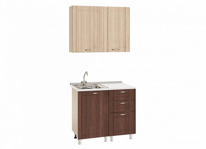 Кухня Кантри 1,1 BMS отличается малыми габаритами и демократичной ценой. Миниатюрный комплект состоит всего из двух модулей – навесного распашного шкафа и тумбы под мойку, объединенной с выдвижными ящиками для мелочей. Выполненные в кантри стиле, фасады отличаются износостойкостью, натуральной расцветкой, легким декором и украшены оригинальными ручками. Купить кухню Кантри 1,1 BMS можно в нашем интернет-магазине, подобрав все необходимые параметры.