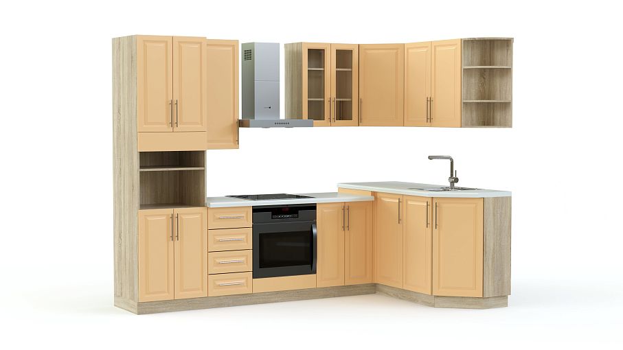 Кухня КХ 66 Премиум BMS - это элегантная классика с акцентными решениями. Напольные и навесные шкафы разной высоты гармонично дополняют друг друга, создавая узнаваемый вневременной дизайн. Среди модулей угловой композиции высокий шкаф с нишами для бытовой техники, глухие распашные секции и посудные витрины, тумба с выдвижными ящиками и радиусный стеллаж. Купить кухню КХ 66 Премиум BMS для комфортной готовки и хранения кухонных принадлежностей вы сможете в нашем интернет-магазине.
