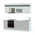 Небольшая стильная модель отлично подойдет и для больших комнат, и для помещений с небольшой площадью. Кухня Рио композиция 2 BMS выделяется оригинальным оформлением фасада с контрастными цветами и декоративными накладками из цветного стекла. При этом, гарнитур удобный в использовании и достаточно вместительный. Он состоит из четырех нижних модулей под общей столешницей и четырёх навесных шкафчиков, из которых особое внимание вызывают оригинально оформленный посудный шкаф и тумба под вытяжку. У нас Вы можете купить недорого кухню Рио композиция 2 BMS нужного Вам цвета и размера.